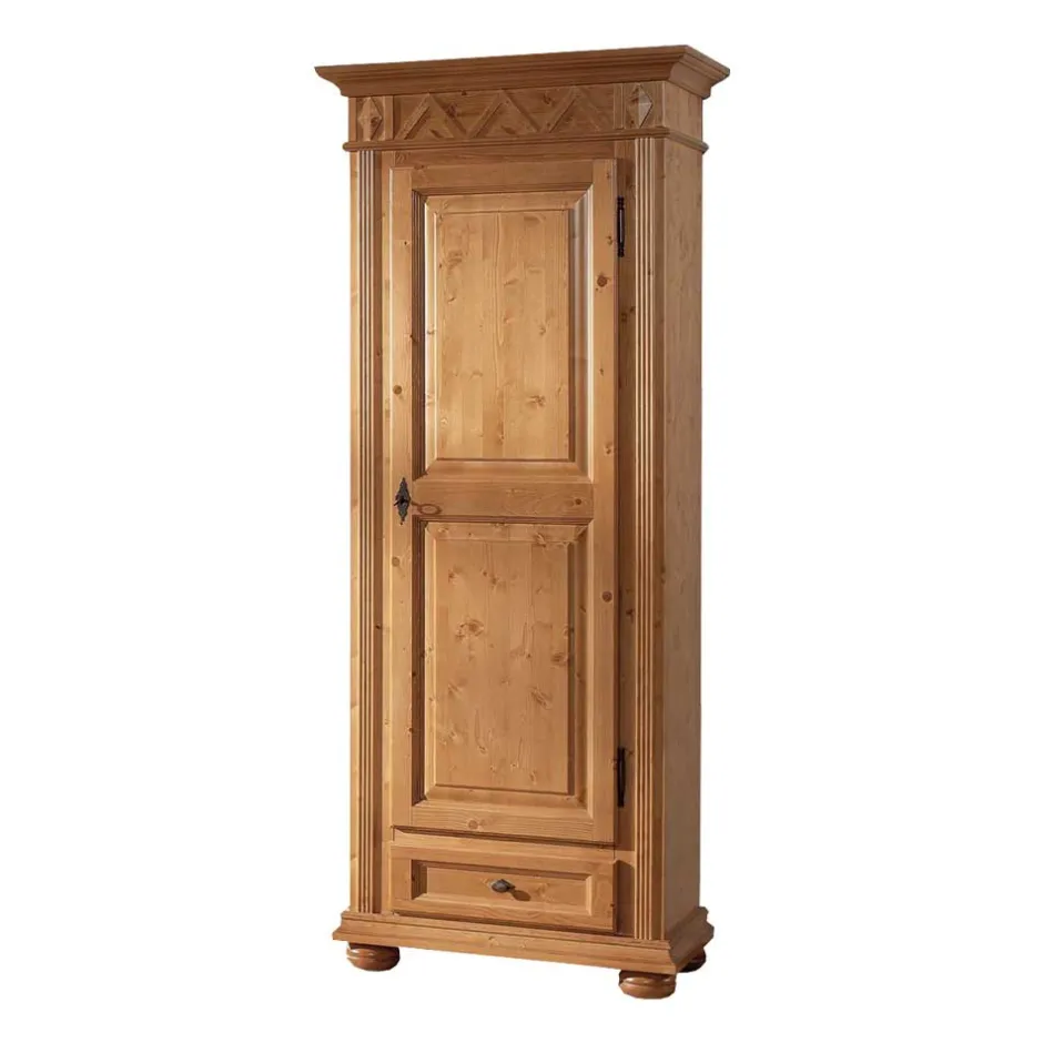 Gefertigt aus massivem Fichtenholz, steht der Schrank nicht nur für Robustheit und Langlebigkeit. Fichtenholz zeichnet sich zudem durch seine einzigartige Maserung aus, die jedes Möbelstück zu einem Unikat macht. Dazu hat Fichtenholz den Vorteil, dass es feuchtigkeitsregulierend wirkt und ein angenehmes Raumklima fördert.