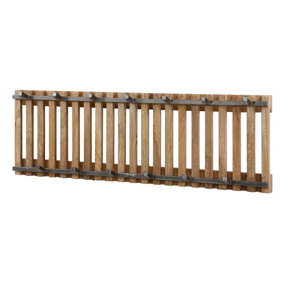Gefertigt aus massivem Mangoholz und robustem Metall, überzeugt die „Imparacta“ nicht nur optisch, sondern auch durch ihre Qualität. Das Mangoholz besticht durch seine charakteristische Maserung und wurde pflegeleicht lackiert, um es vor alltäglichen Abnutzungen zu schützen. Die Metallhaken, die an den vertikalen Holzleisten befestigt sind, verleihen der Garderobe einen coolen Industrial Look und sind gleichzeitig äußerst stabil. Die Kombination dieser Materialien sorgt für eine lange Lebensdauer und macht die Garderobe zu einem verlässlichen Begleiter im Alltag.