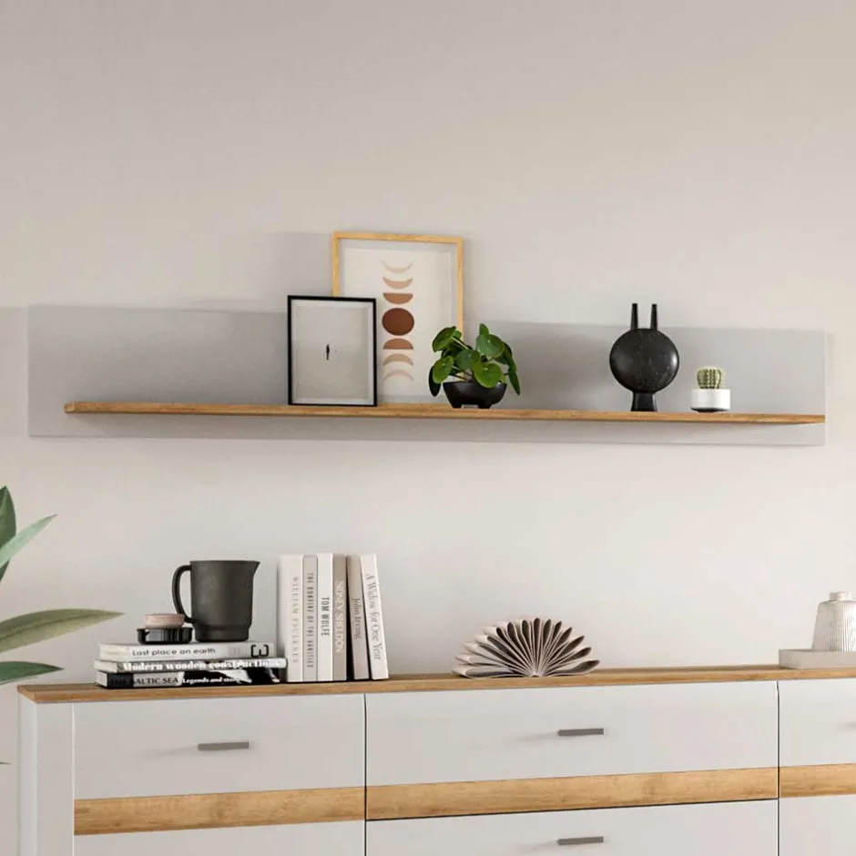 - Praktisches Wandboard in Lichtgrau und Eichefarben
