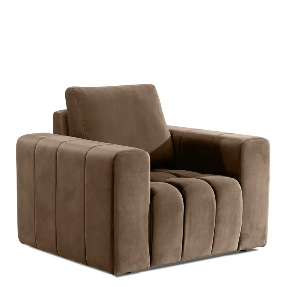 Der tief gesteppte Sitz und die aufwendig gearbeiteten Seiten verleihen dem Polstersessel eine faszinierende Struktur, die das Design zusätzlich aufwertet. Rückenlehne und losem Kissen sei Dank, genießen Sie jederzeit optimalen Halt und gemütlichen Rückzug – ideal für entspannte Lesestunden oder das Sonntagsfrühstück mit der Zeitung. Die gradlinigen Armlehnen schenken dem Gesamtbild nicht nur Eleganz, sondern bieten zugleich eine praktische Stütze zum Ablegen oder Aufstützen.