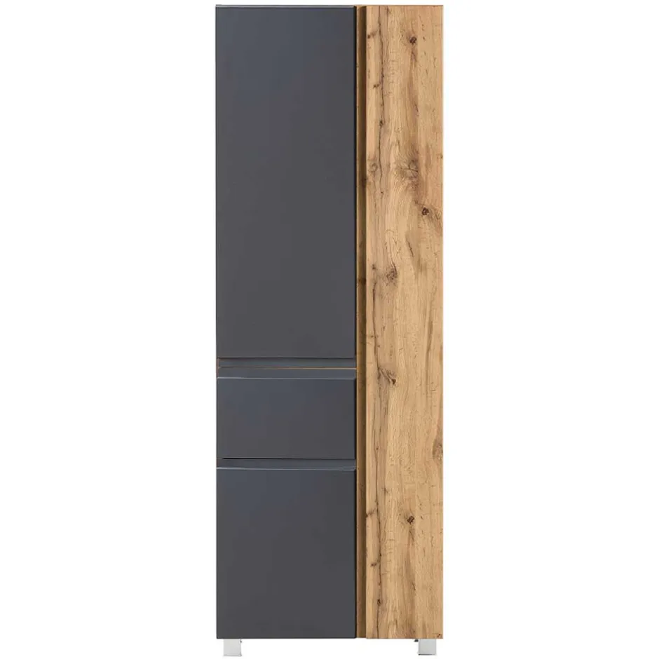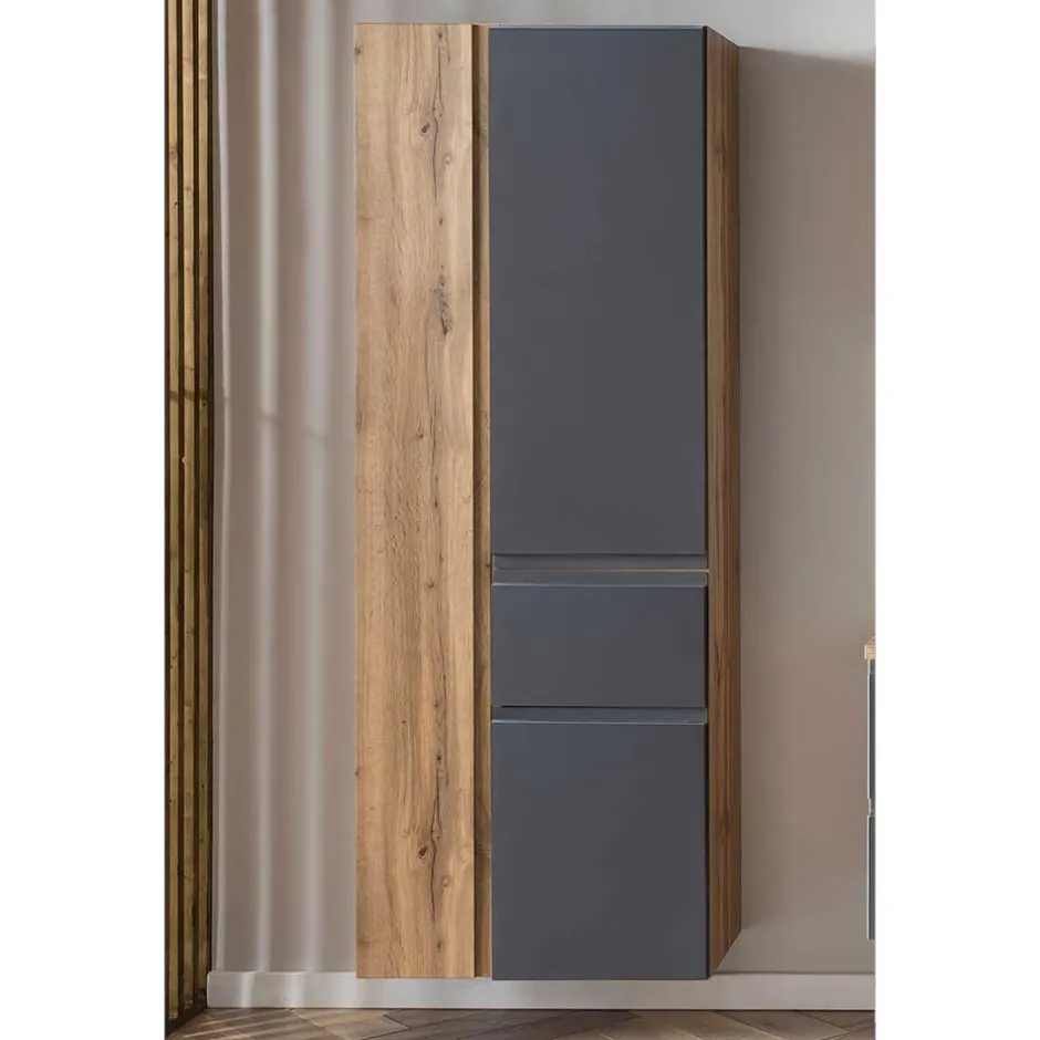- Klasse Bad Hochschrank in Dunkelgrau und Wildeichefarben