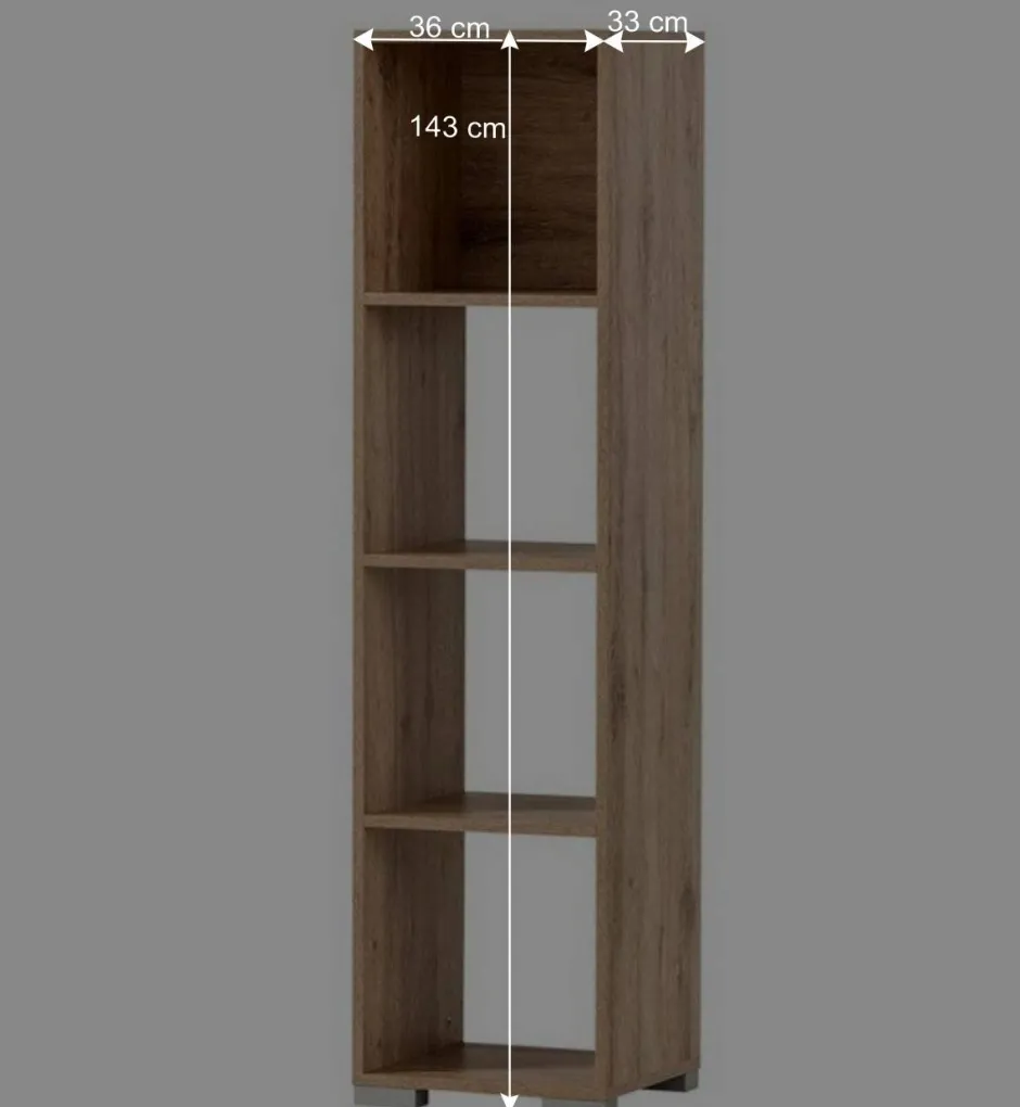 Mit einer Breite von nur 36 cm und einer Höhe von 143 cm passt das Regal auch in kleinere Büros oder Nischen. Hinter dem schlanken Äußeren verbergen sich vier großzügige Fächer in Ordnerhöhe – perfekt, um Unterlagen, Aktenordner oder Bürobedarf systematisch zu verstauen. Dank der drei variabel einsetzbaren Einlegeböden lässt sich der Innenraum flexibel gestalten. Die offene Gestaltung ermöglicht dabei schnellen Zugriff auf alle Unterlagen – effizient und zeitsparend.