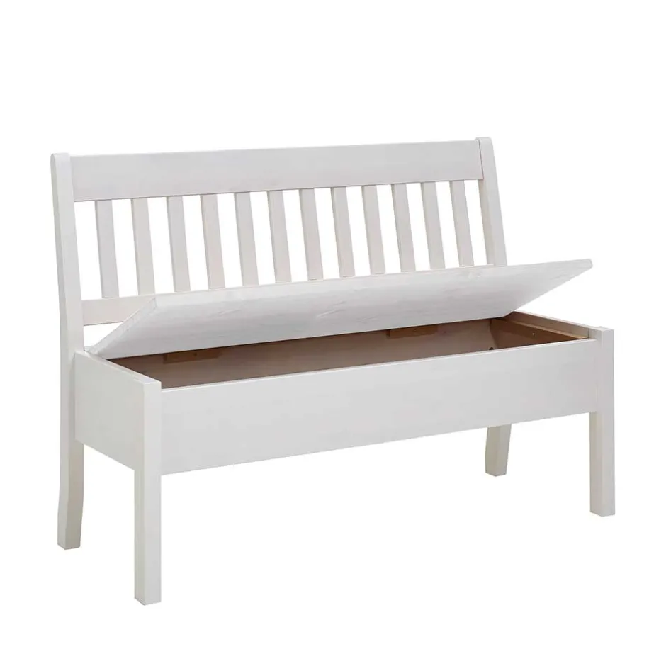 Wohnen Kiefernholz Truhenbank in Weiß – Zanaris
