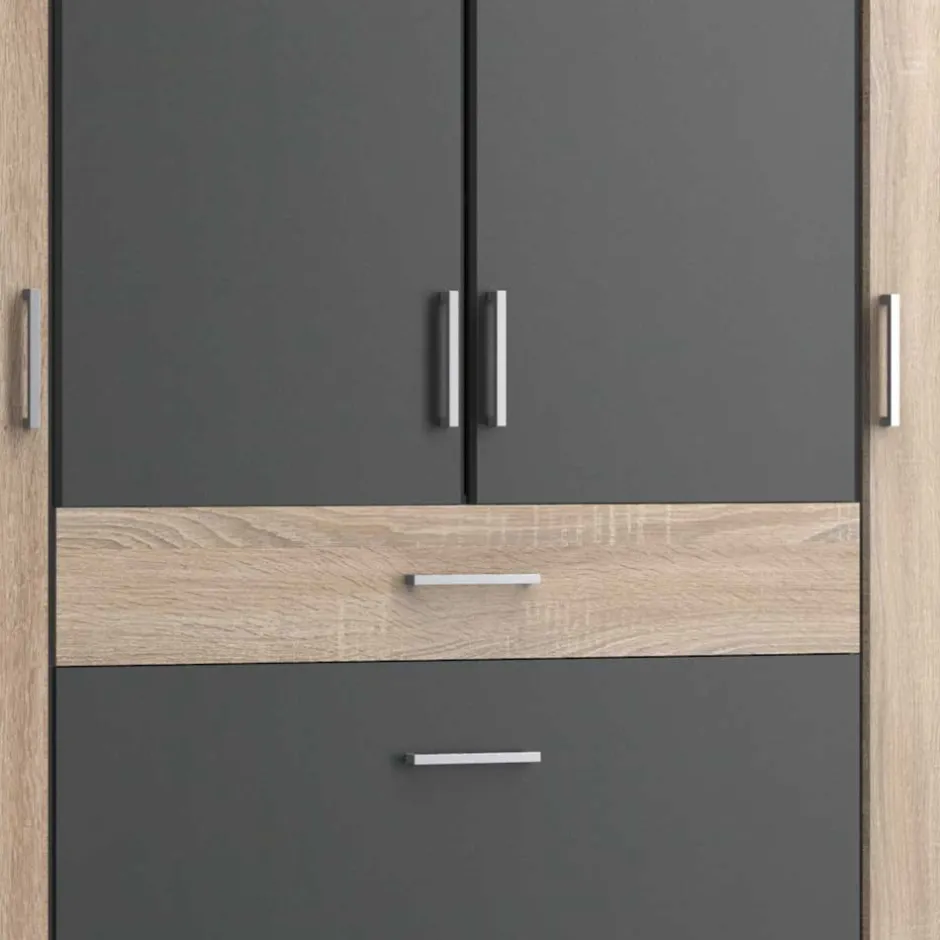 - Schicker Kleiderschrank in Eiche Sägerau und Dunkelgrau