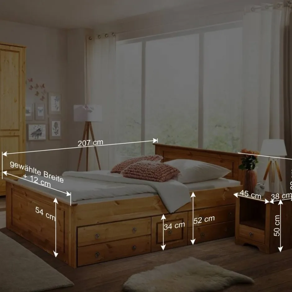 - Ländliche Bett Kombination in Kiefer Naturfarben