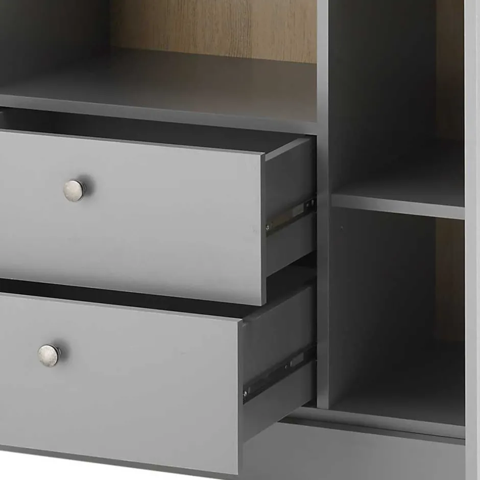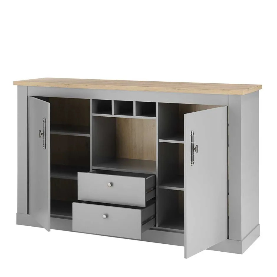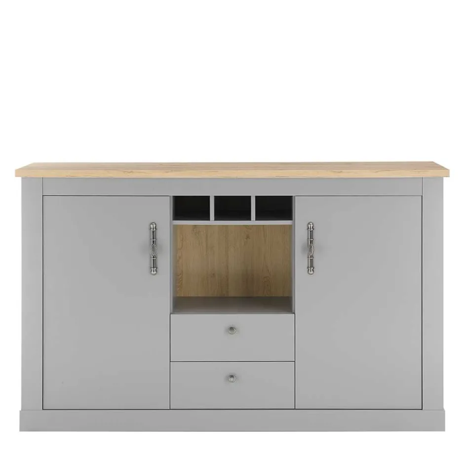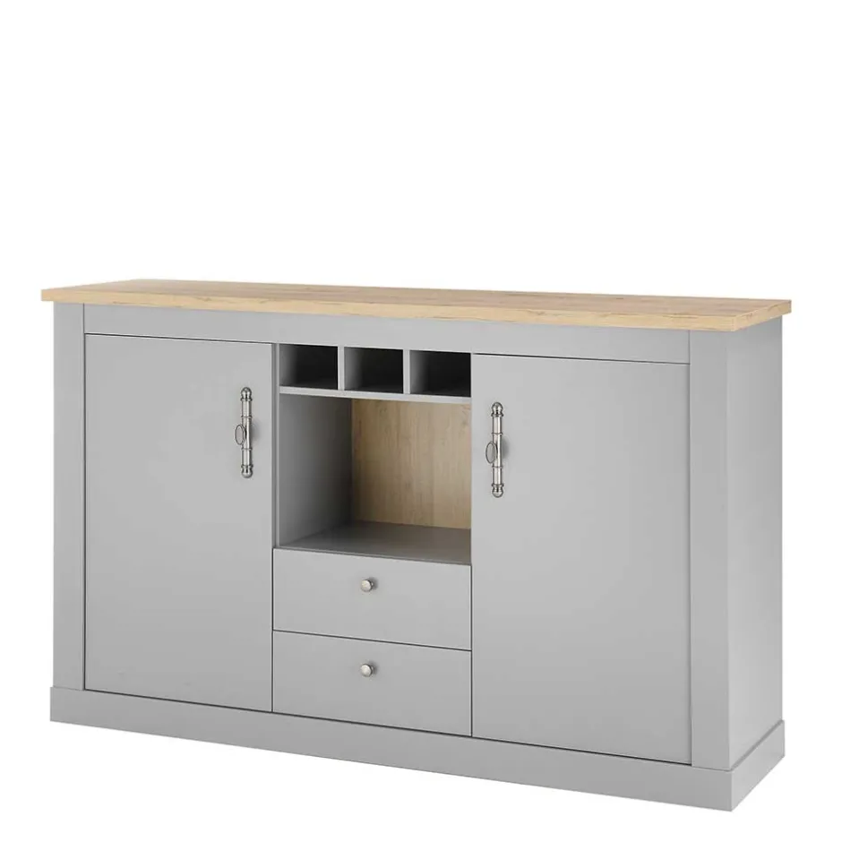 - Trendiges Sideboard in Lichtgrau und Eichefarben