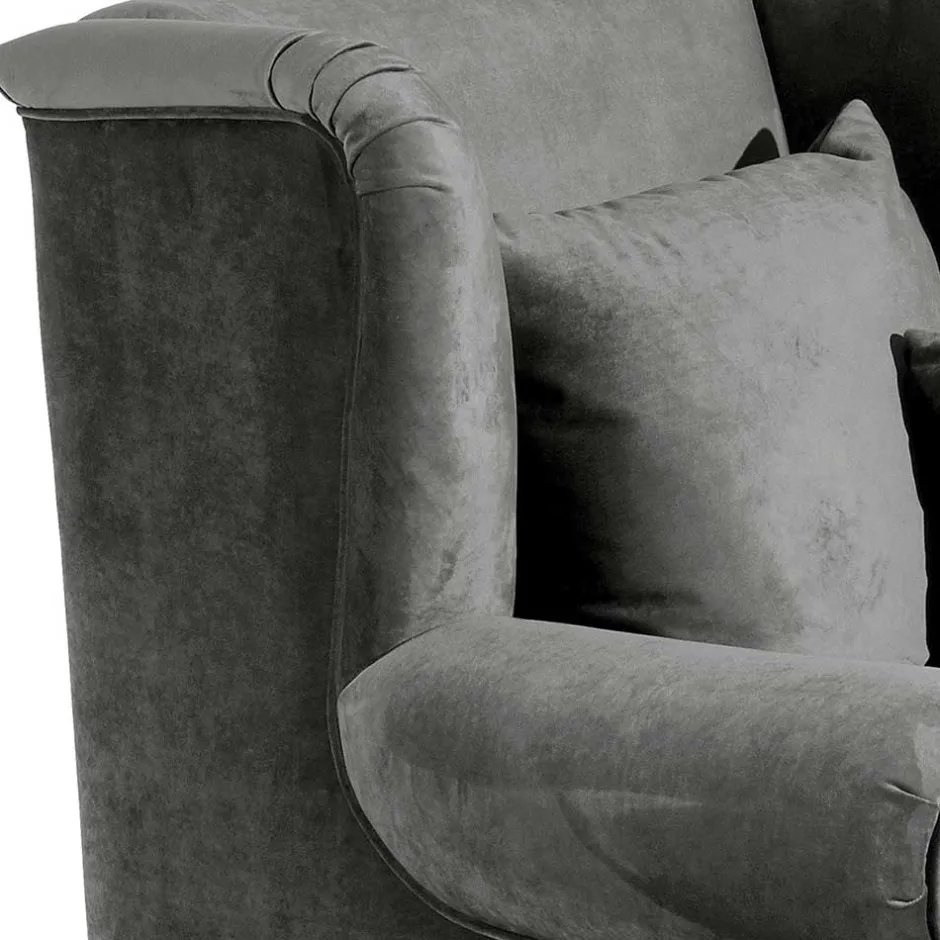 Der strapazierfähige Samtvelours-Bezug in elegantem Grau verleiht dem Sessel eine edle Note. Samtvelours ist bekannt für seine weiche Oberfläche und den luxuriösen Glanz, der jede Berührung zu einem sinnlichen Erlebnis macht. Mit einer Strapazierfähigkeit von 100.000 Scheuertouren nach Martindale und einer Lichtechtheit von 4 ist dieser Bezug ideal für den täglichen Gebrauch und behält seine Farbechtheit auch bei Lichteinwirkung.