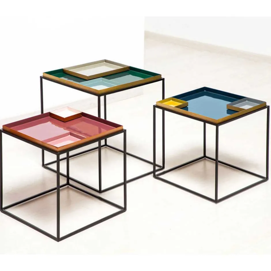 - Cooler Beistelltisch in Blau, Grau, Orange und Schwarz