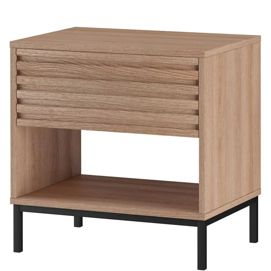 - Kompakte Nachtkonsole in Eichefarben und Schwarz