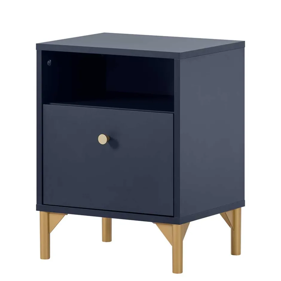 - Top Nachtkommode in Dunkelblau und Goldfarben