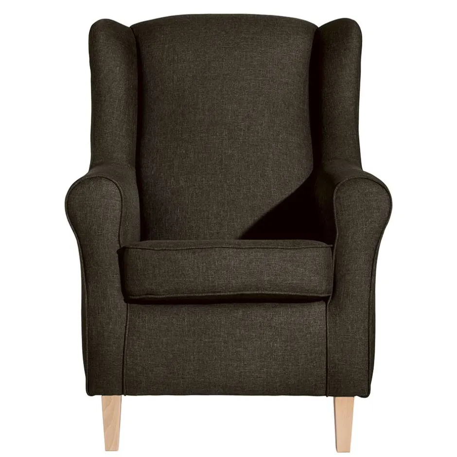 Das stabile Grundgestell aus Massivholz und Holzwerkstoffen sorgt für zuverlässige Standfestigkeit bei gleichzeitigem Sitzgenuss bis zu 120 kg. Der aufwendig gearbeitete Bezug mit umlaufenden Kedernähten sowie der echt bezogene Rücken unterstreichen den hohen Qualitätsanspruch dieses Möbelstücks. Schön geschwungene Armlehnen und gemütliche, seitliche Ohren laden dazu ein, sich einzukuscheln und den Alltag draußen zu lassen.