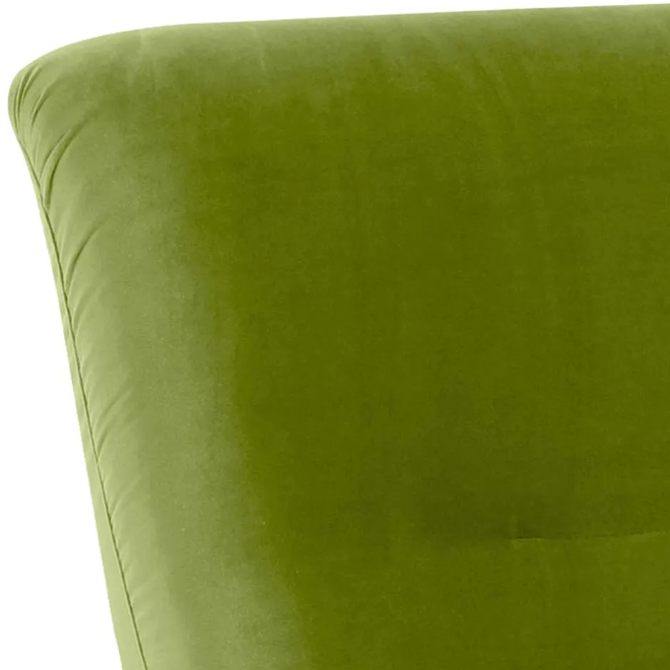 Der olivgrüne Samtvelours-Bezug verleiht dem Sessel eine luxuriöse Anmutung, ist aber zugleich pflegeleicht und strapazierfähig. Samtvelours aus Polyester ist bekannt für seine Langlebigkeit und Pflegefreundlichkeit, sodass „Sofia“ auch nach Jahren noch wie neu aussieht und keinerlei Einbußen in Farbe oder Textur aufweist.