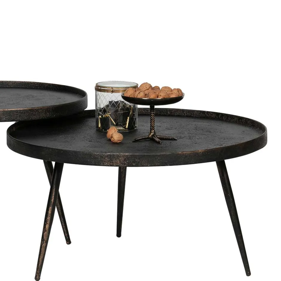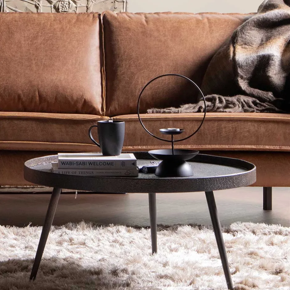 Wohnen Runder Couchtisch aus Schichtholz & Metall – Niova