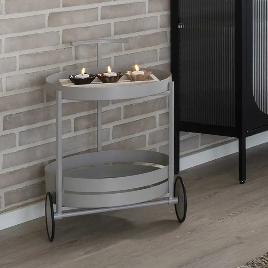 Der Servierwagen „Veladrano“ in elegantem Grau ist die perfekte Ergänzung für moderne, minimalistische Wohnräume. Mit seiner klaren Formsprache fügt er sich mühelos in jedes Ambiente ein und überzeugt durch sein unaufdringliches, funktionales Design. Ob als stilvoller Barwagen oder praktischer Beistelltisch in Küche und Esszimmer – dieser Servierwagen vereint Form und Funktion auf harmonische Weise.