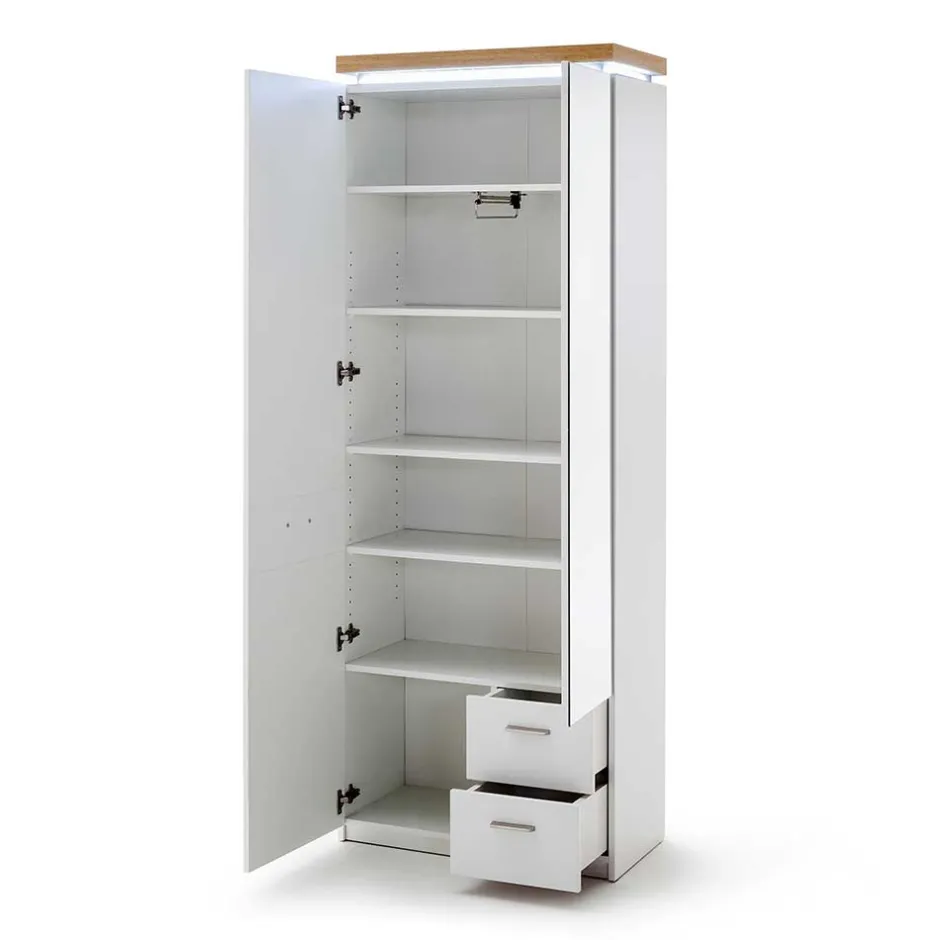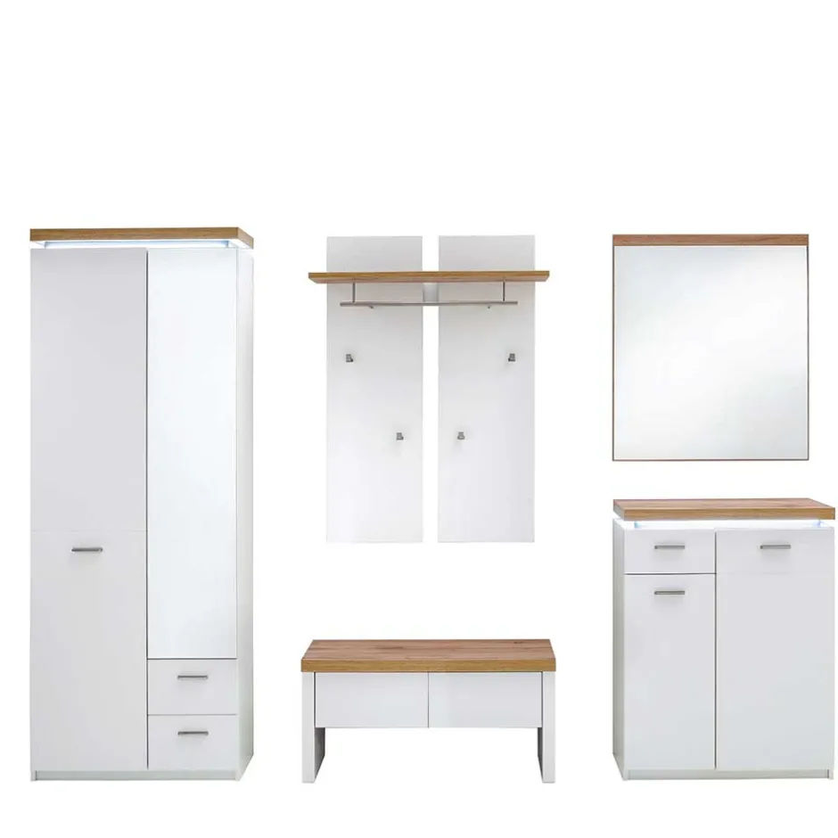 - Stimmige Garderobenkombination in Weiß und Wildeichefarben