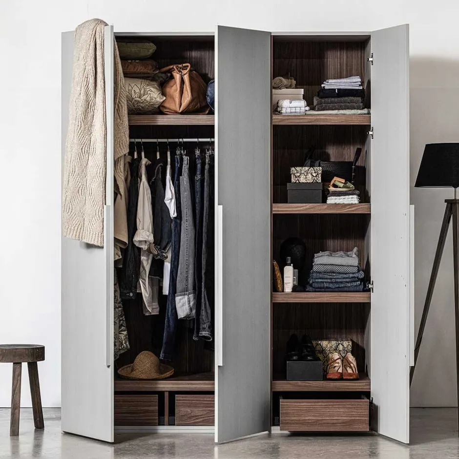 Skandinavisches Design begeistert durch seinen reduzierten, klaren Stil, der auf das Wesentliche setzt – ohne auf Gemütlichkeit zu verzichten. „Rochella“ verkörpert diese Philosophie in Reinform: Mit seiner schlichten Formensprache, der harmonischen Kombination aus grauer Lackierung außen und warmem Nussbaumdekor innen schafft dieser Schrank ein ruhiges, einladendes Ambiente. Ideal für alle, die ein aufgeräumtes, freundliches Schlafzimmer lieben.