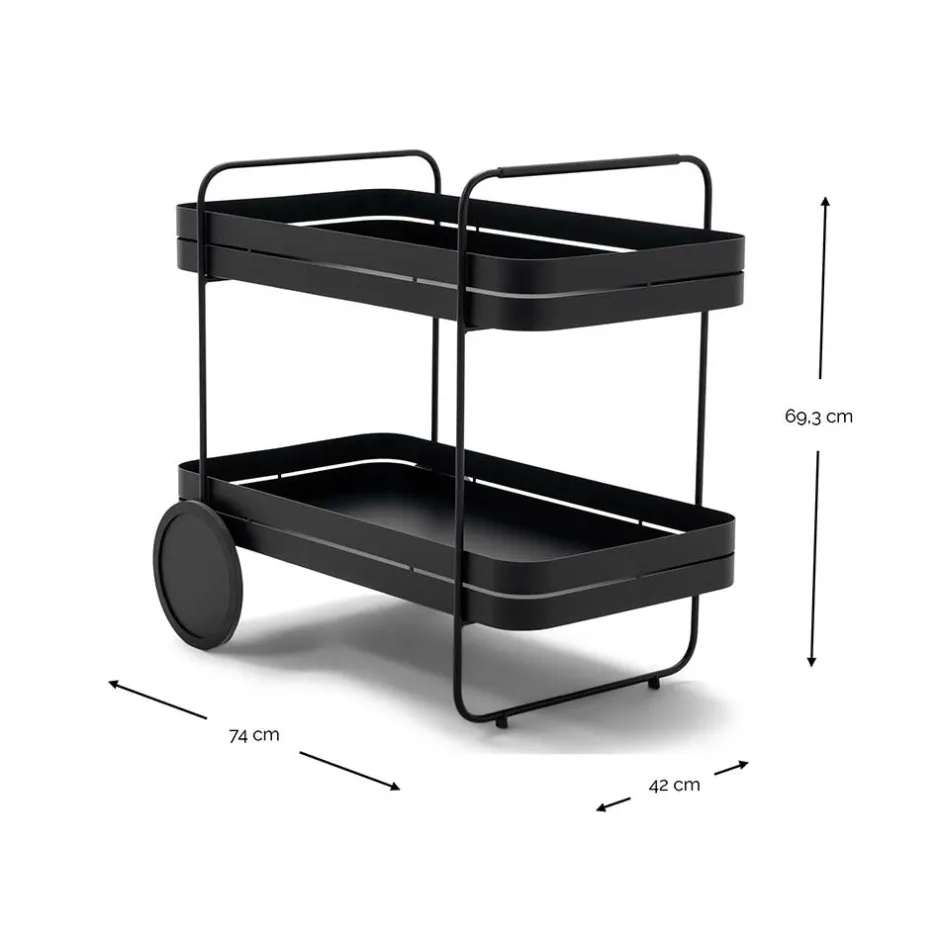 Hergestellt aus robustem Stahl und veredelt mit einer strapazierfähigen Pulverbeschichtung, garantiert „Taradina“ Langlebigkeit und pflegeleichte Oberflächen. Die weichen Rundungen an den Ecken sorgen für ein angenehmes Handling und geben dem Wagen ein harmonisches Erscheinungsbild.
