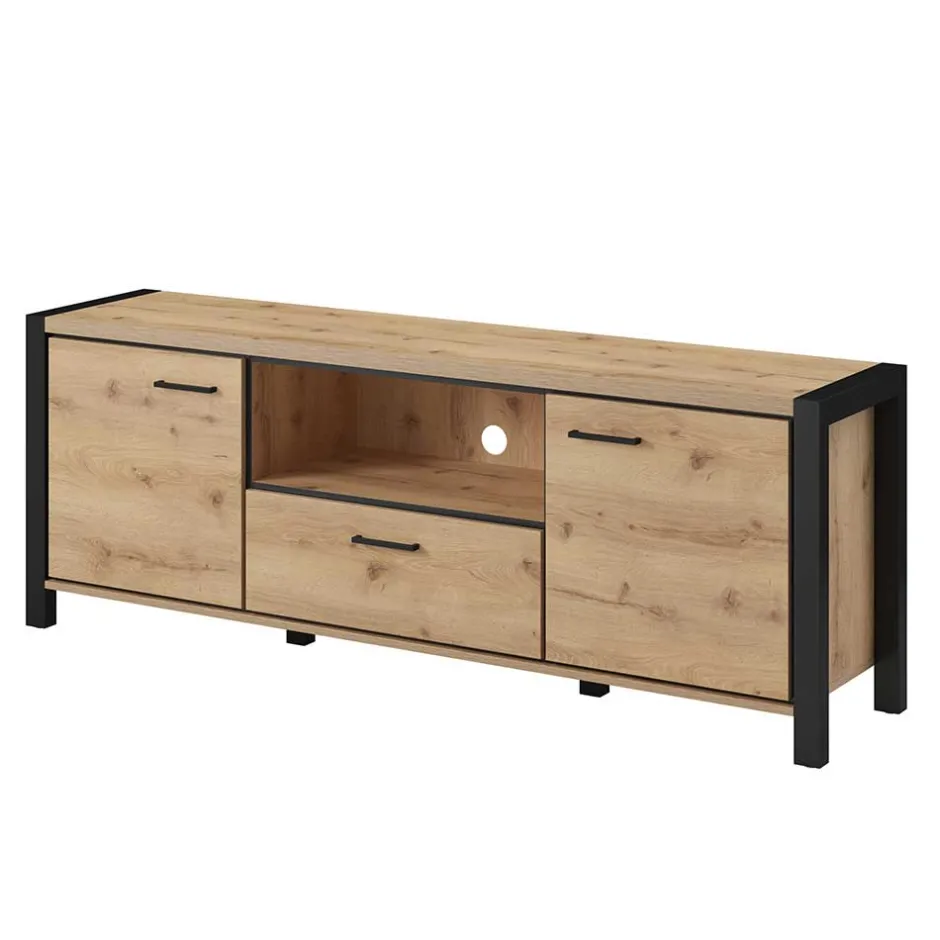 - Wohnliches TV-Lowboard in Wildeichefarben und Schwarz