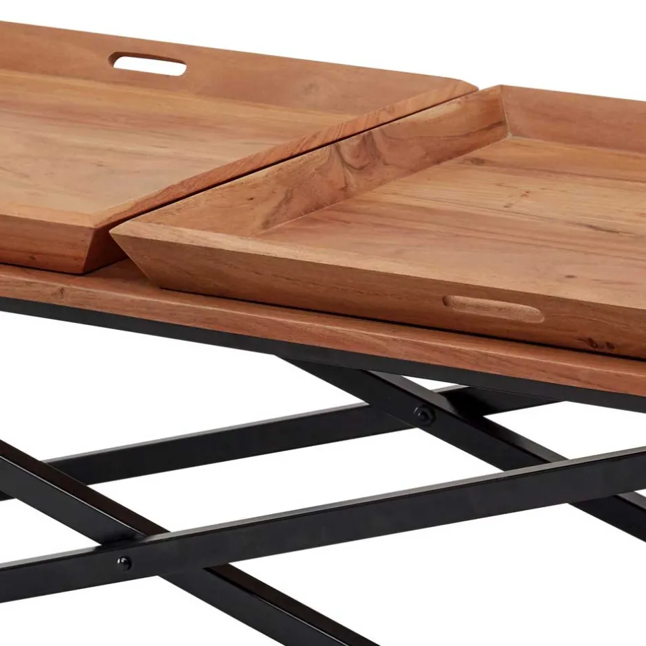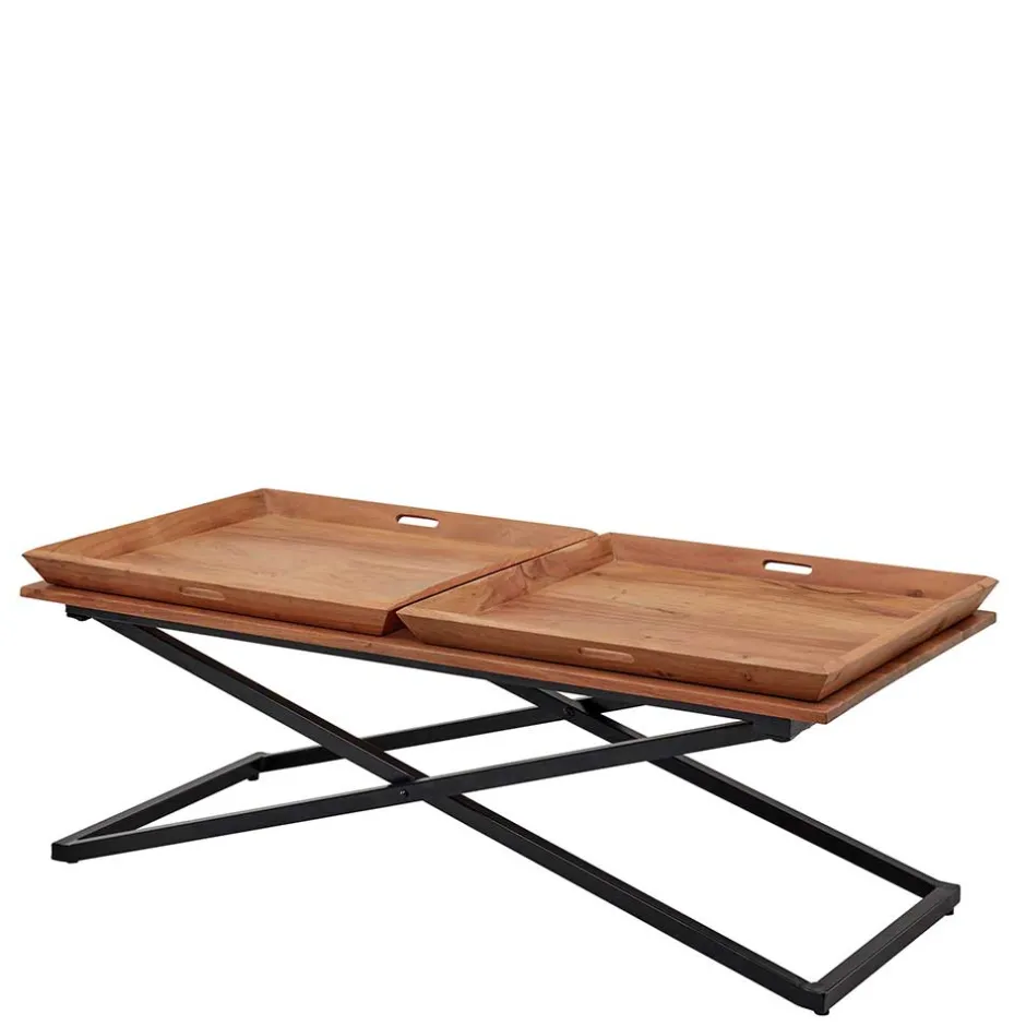 - Praktischer Couchtisch in Akaziefarben und Schwarz
