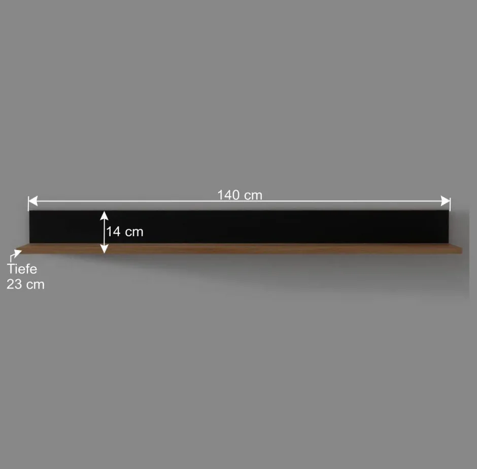 Das Wandboard (BxHxT) 140x14x23 cm überzeugt mit einer Ablage und Rückwand, die zusätzlichen Stauraum und Platz für Dekoration bieten.