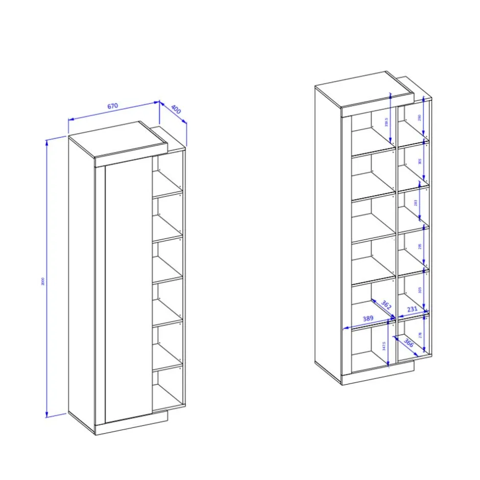 - 67 cm Breit, 200 cm Hoch, 40 cm Tief