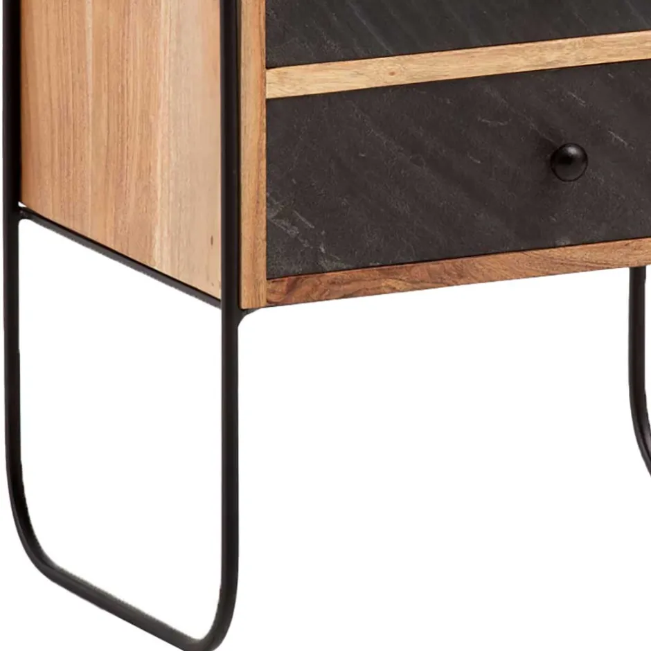 Die zweifarbige Nachtkommode „Avalun“ vereint modernes Design mit funktionaler Eleganz. Ihr einzigartiger Look in Akazie Natur und Schwarz macht sie zum Highlight in jedem Schlafzimmer. Mit ihrer filigranen Metall-Bügelgestell und den charmanten Rundungen steht sie sicher und stabil. Perfekt für jeden, der ein stilvolles und zugleich praktisches Möbelstück sucht. Die Kommode „Avalun“ wird in Handarbeit gefertigt und ist somit ein echtes Unikat – kleine Abweichungen unterstreichen ihren individuellen Charakter.
